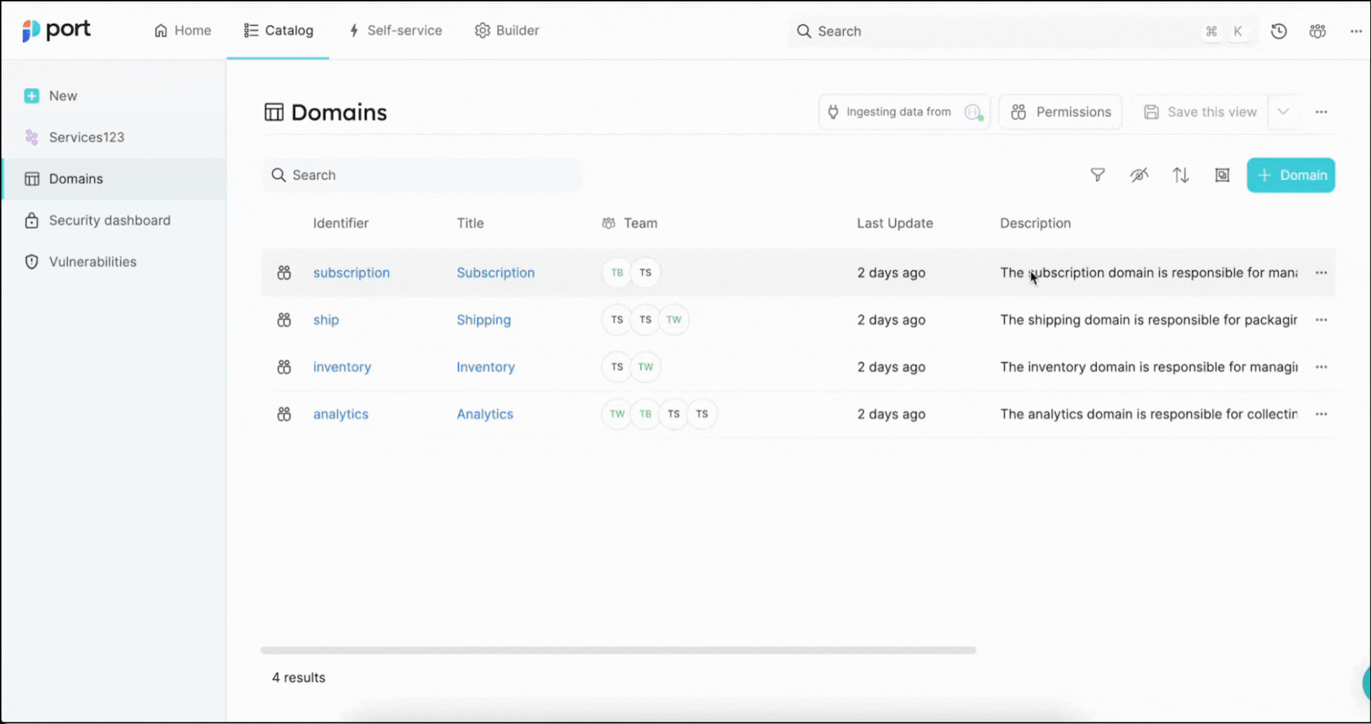 Port allows you to create folders in your software catalog that can be used to group pages by topic, team, or any other criteria that fits the needs of your organization.