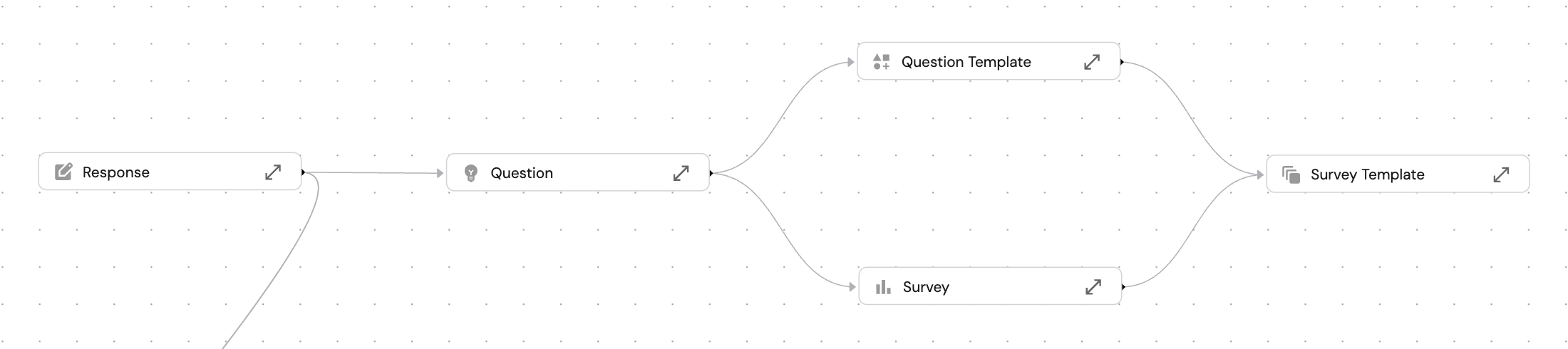 These blueprints model the survey data and are only created the first time you install a survey:Survey Template โ Defines the structure of a survey that can be reused multiple times.