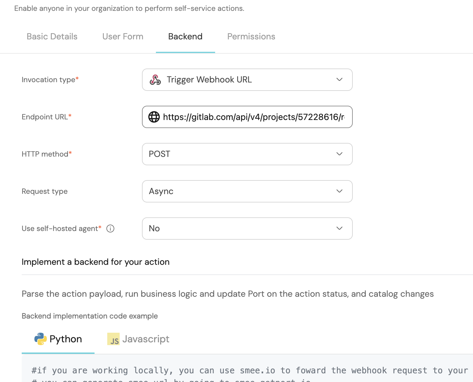 In the following guide, you are going to create a self-service action in Port that executes a GitLab pipeline to create a Kubernetes namespace.
