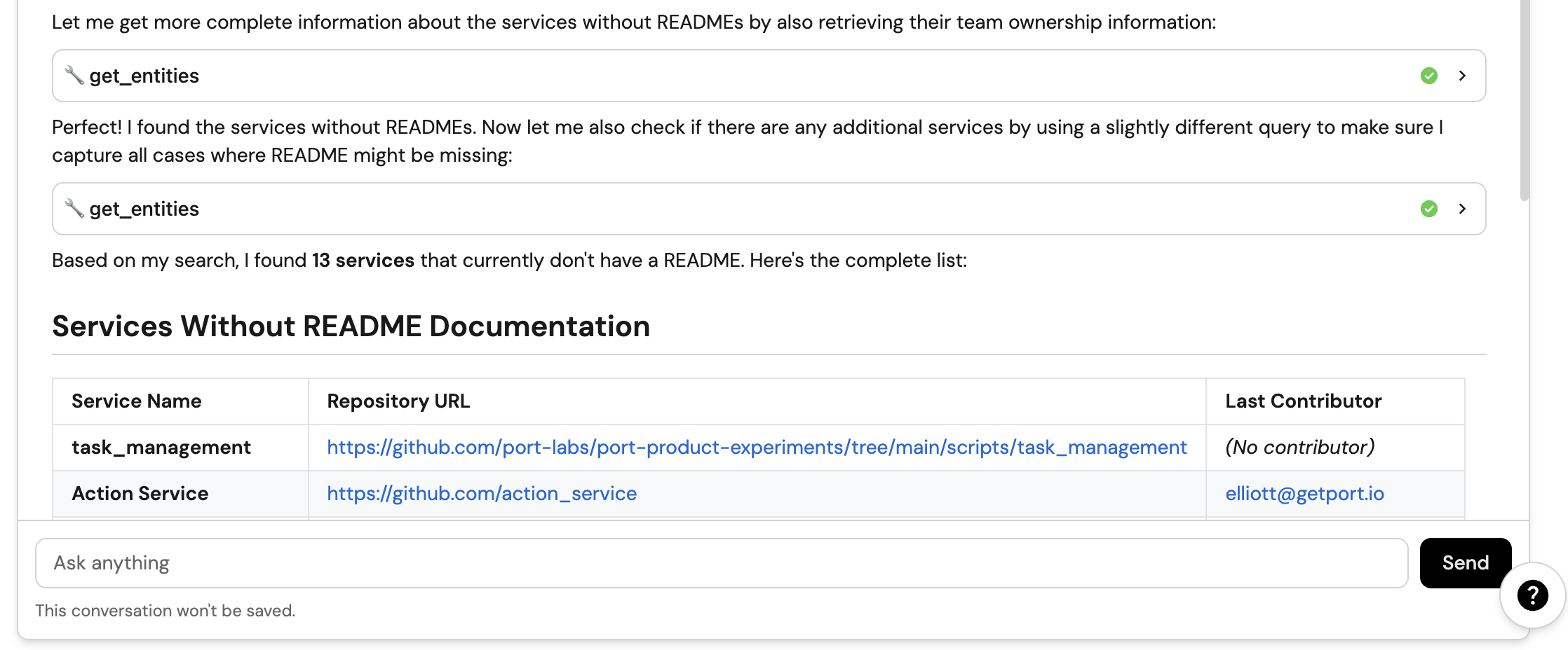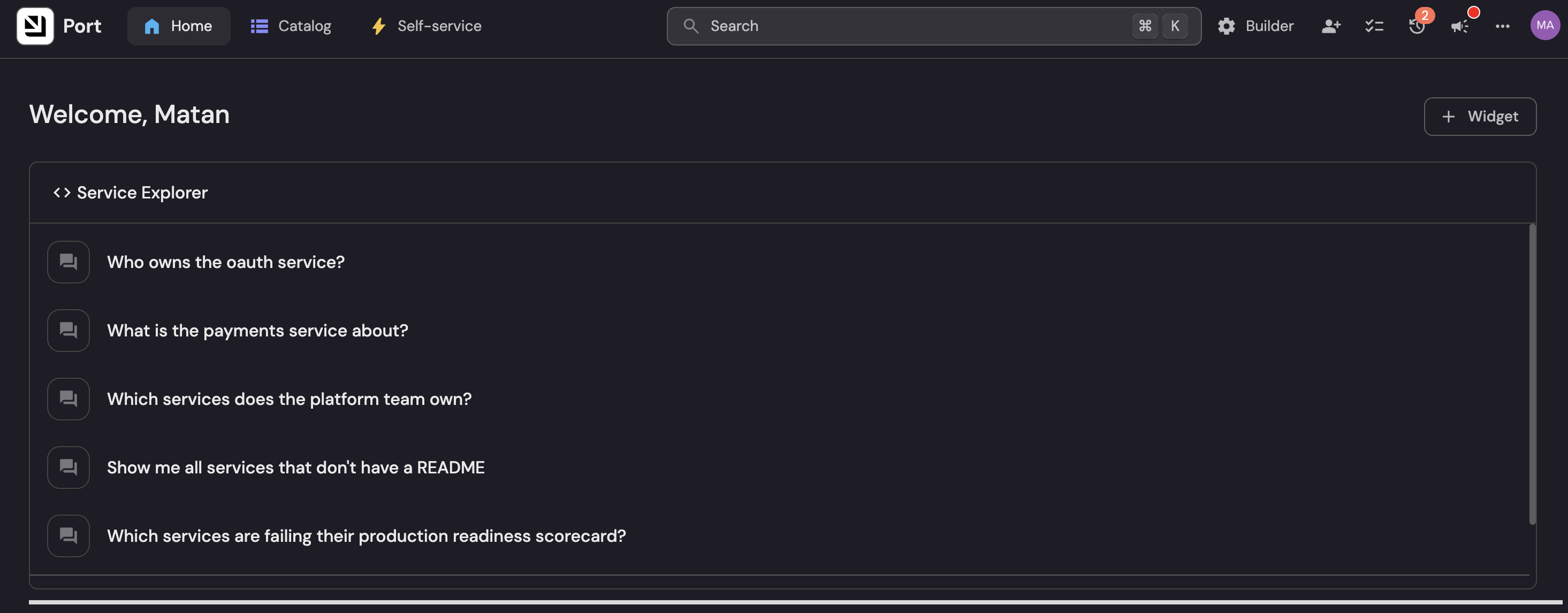 By the end of this guide, your developers will be able to get information about your services via Port's AI chat.