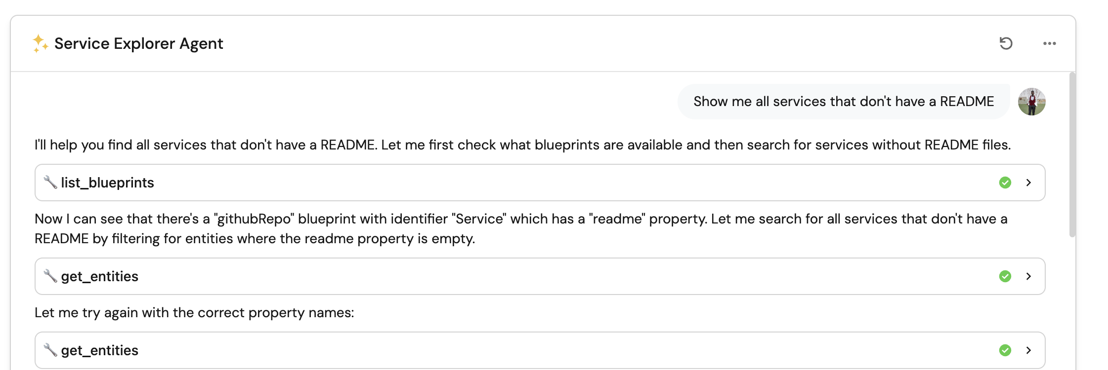 • Refine the prompt: Customize the agent's prompt to emphasize specific aspects of service ownership or documentation standards unique to your organization.