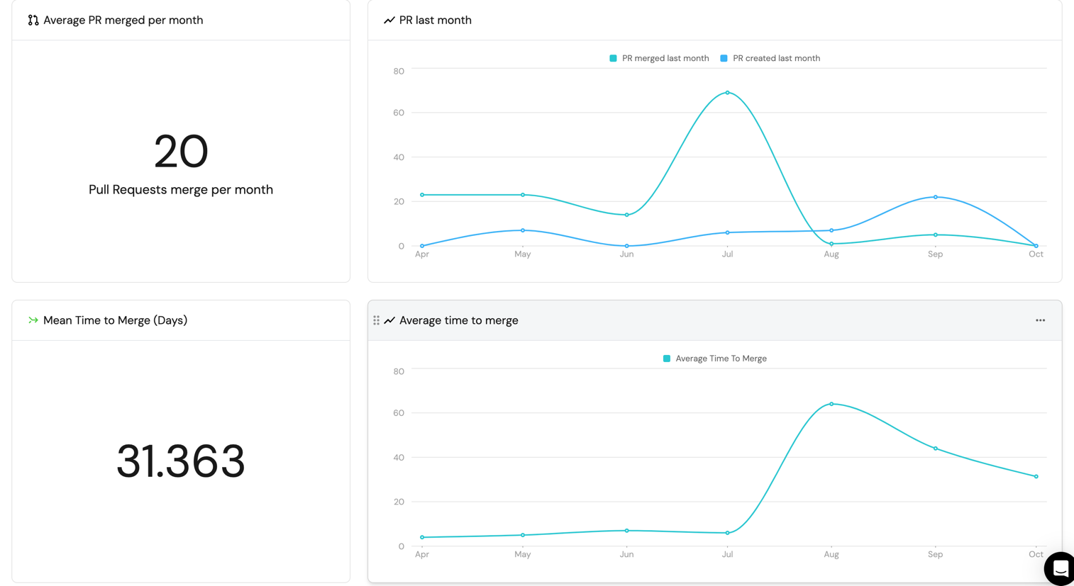 By leveraging Port's Dashboards, you can create custom dashboards to track the pr metrics and monitor your team's performance over time.
